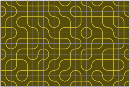 §2. The popularity of Truchet tiles has increased greatly since the late-twentieth-century work of Cyril Smith. He used a simple modification, replacing the triangles with arcs (here called links) connecting the sides. In Smith's version, the sole tile has two distinct rotations:
