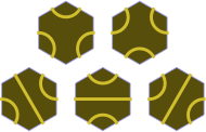 As with the square tiles, it is possible to have links that cross. The three tiles in figure 3C have three, six, and one rotation respectively.