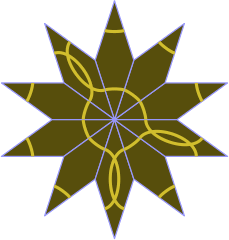 Figure 4A is an example of placing tiles that have a chunk size of 36°; an important observation is that a placement need not be periodic. The dots represent the sizes of angles, as measured in chunks.