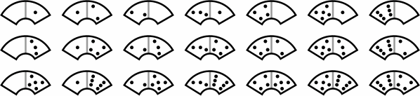 One way to extend the set is to allow more than six pips; among traditional dominoes, double-nine and double-twelve sets are well known. Figure 2 illustrates another way to enlarge the set, with 21 non-double reverse tiles: