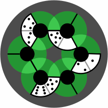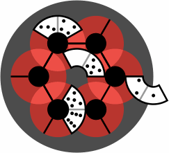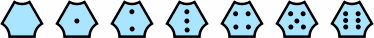 A tile with only one number, roughly triangular in shape, also fits the skew alignment diagram. It has three concave curves, each of which must abut a fractional or whole black dot. Despite having only one number, this tile takes three neighbors and thus permits branching of the layout. It is tinted cyan in the drawings for ease of identification.