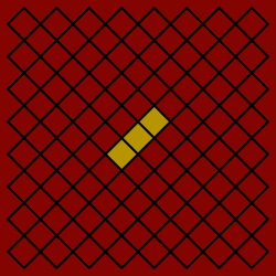 A complication of using the two shapes together is that, because the square root of three is irrational, a playing surface (analogous to figure 3A or 10D) cannot be marked with alignments for all possible layouts, as they are infinitely dense. As a consequence, players might choose a layout grid that permits only a subset of possibilities, or might elect to dispense with a grid entirely. Without any kind of grid, however, a difficulty arises in ensuring that tiles are placed accurately. This problem becomes salient when a large loop is attempted and needs to be verified.