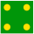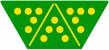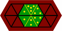 Shown in figure 7C are the traditional layouts of 2 or 3 pips for dominoes (and dice), which do not miter well, which failure is why they have not been retained for sesquidominoes.