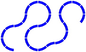 There is in fact no compulsion that the track layout be a loop, as exemplified by the serpentine design of figure 2-5. Nonetheless, most hobbyists do want to be able to include loops in their layouts; and if a satisfying variety of loops is going to be possible, then a considerable level of care is required in the design of track pieces.