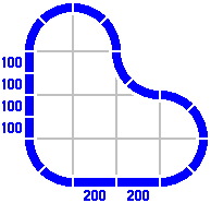 2B. Many layout examples will appear in the following sections, and for concreteness an assumption will be made: the curved track pieces have a radius of 200 millimeters [about 8 inches]. Why this number?