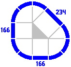 A crossing might contain one straight and one curved segment, as in figure 6-5, which is a variation on 6-4. The figure 166 refers to the length of the straight segment of the crossing; the curved section is an eighth of a circle whose radius is 1 quintimeter, as usual.