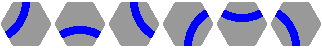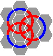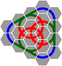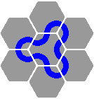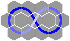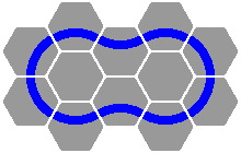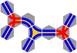 Overpasses are possible; compare figure 11-6a to figure 2-4. Figure 11-6b is like figure 11-6a except that display of the hexagons has been suppressed — this simplification will be often be performed. Note also that the hexagonal structure has been turned 90° to fit better on the screen.