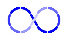 What might be considered the ultimate piece has nine segments, and can be viewed as the union of the six segments of figure 11-1 with the three of 11-4. Unclear, however, is whether such a complicated piece would actually work. If track is implemented as grooves cut into a base, there may be so many grooves that train wheels receive insufficient guidance and wander off course. If instead track is more realistically constructed as rails, there may be so may cuts in the rails [for allowing crossing wheel flanges to pass] that trains derail. This piece is not illustrated on this page because it is too complicated to effectively render in the available resolution, but it is included in a gallery of pieces possible under this system.