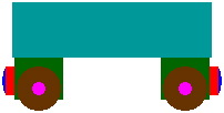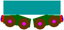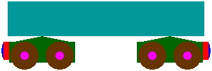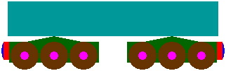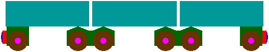 Figure 1 contains scale drawings of two typical toy train cars; they do not represent any one brand exactly. The left-hand column has a four-axle car that is about 110mm long (including couplers), the right-hand has a two-axle car about 60mm long, and the middle column has an end view of either.