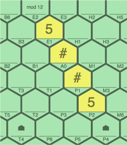 In forming sequences, it is treated exactly the same as a 0, and transcribed 0A0. As always, the first player's first move must incorporate cell A0 in whatever sequence is formed; the difference now is that this first sequence will invariably contain a 0. Sequences formed or extended later will continue to regard the modulus marker as an ordinary 0A0.