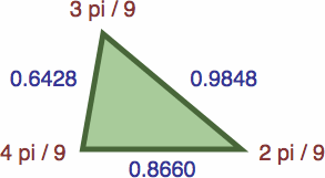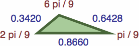- c = sin (3 π / 9) = sin (6 π / 9) ≈ 0.86602540