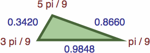 - a = sin (π / 9) = sin (8 π / 9) ≈ 0.34202014