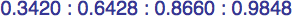 - 0.3420 : 0.6428 : 0.8660 : 0.9848