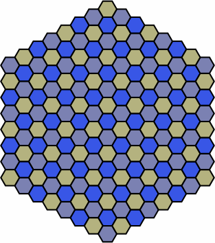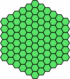 The plainest, and perhaps most common, tessellation of hexagons uses regular hexagons of uniform coloring, as below.
