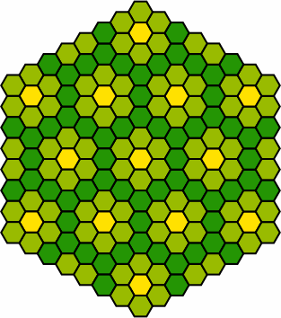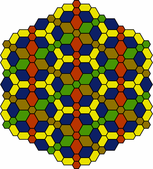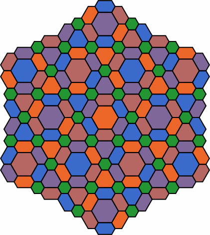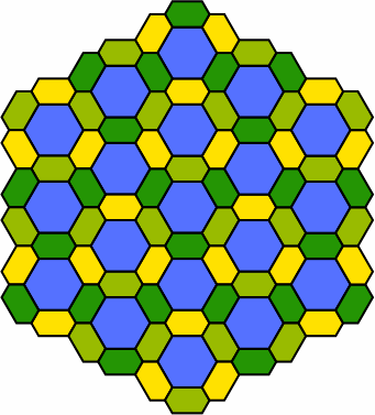 The hexagons in the next table will suffice for many purposes. Included are all figures where no side is longer than three units; if no side is longer than two, it is rendered in green.